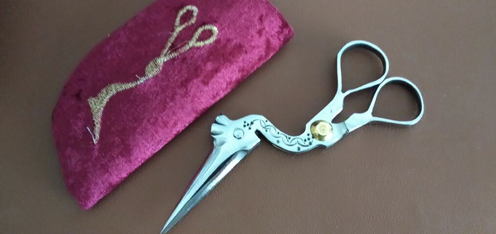 コウノトリのはさみはオスとメスがあり、これはトサカがあるからオス。裁縫にぴつたりの小さなサイズながら、なんでも切れる優れもの。段ボールも切れる。