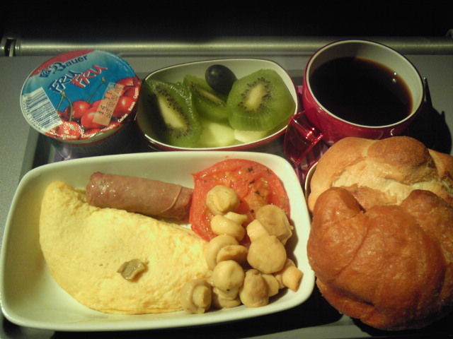 到着前の朝食、モッツァレラチーズが中には行ったオムレツ。