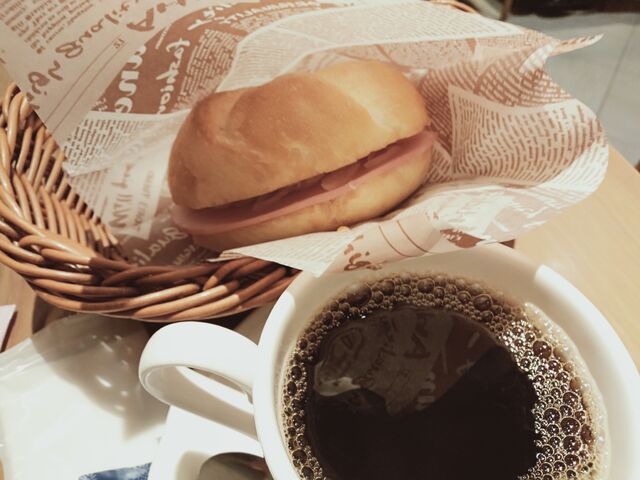 カルネのパンはドトールのモーニングのパンに似ている。サクサクした食感。中身は薄いハムとスライスした玉ねぎとシンプル。両面はマーガリン。