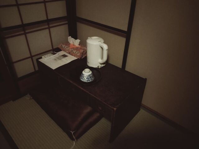 昔ながらの低い机。正座式。あああ、これは・・・。勉強でなければ良かったのだが。