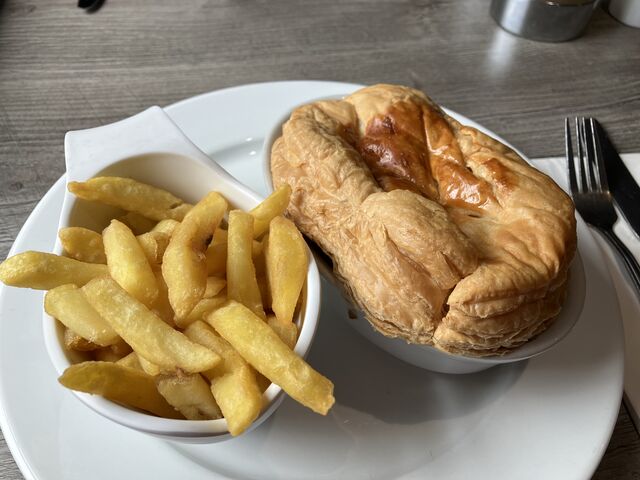 牛の煮込みのようなものにパイ生地が蓋になってる。んんん・・名物だからね。コーラも付けてSTG 20ぐらい。およそ4000円。初対面の家族と相席(笑)