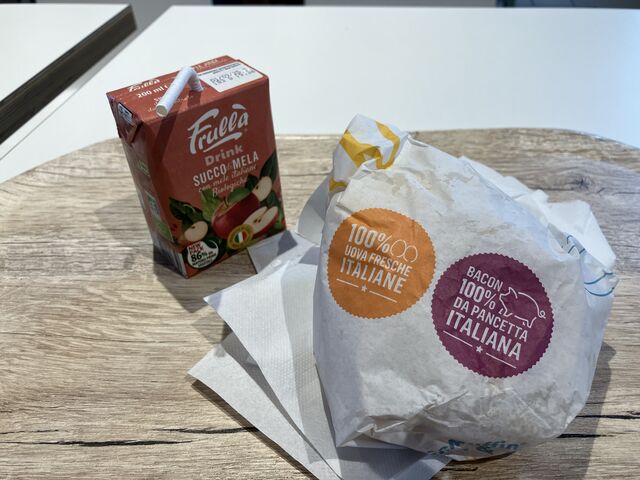 空港内にマックがあったのでジュースとエッグマフィン。EUR 5.5ぐらいだったかな?