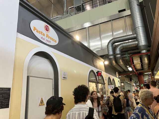 市場内で行列ができてたパスタ屋さん。席はなく立ち食い