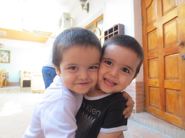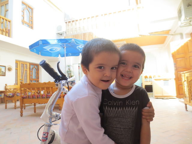 子供達はいつも宿のパティオで遊んでいます。お兄ちゃんがカメラ目線。