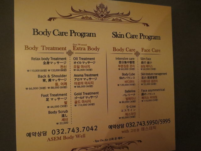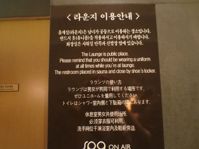 仁川空港、地下にある「SPA ON AIR」。 ここは、24時間営業。入場料W15,000。