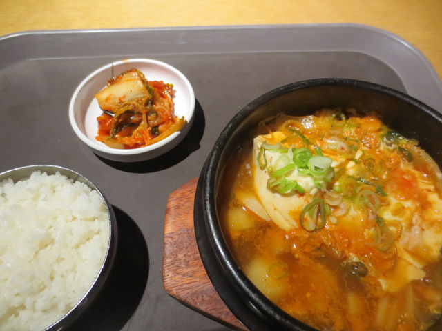 「海鮮スンドゥブ」を注文。W8,000. キムチはセルフで食べ放題。