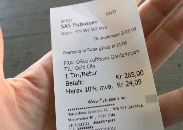 1. Transportation (移動交通費) NOK 297 = 3,861円