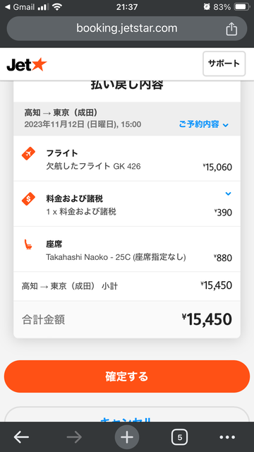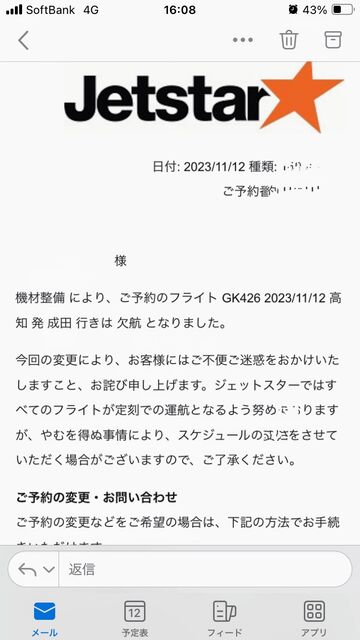 1. 帰り便のジェットスターの欠航が残念。