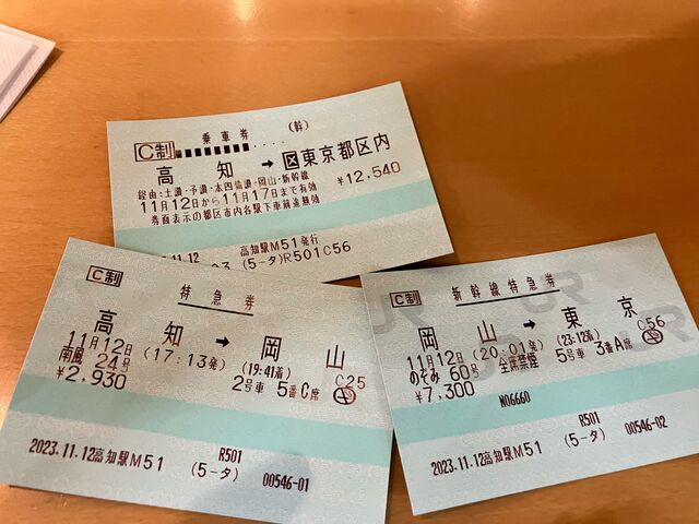 高知 → 東京 ジェットスター欠航のためJR 片道22,770円