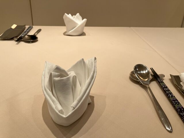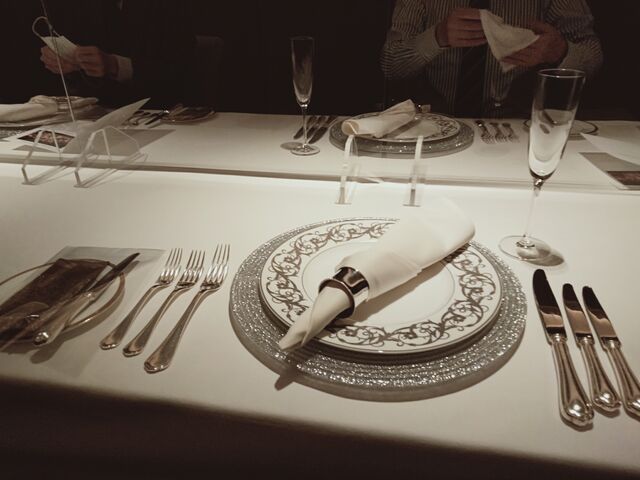 まるでフレンチを思わせるテーブルセッティング。カトラリーもピカピカ。