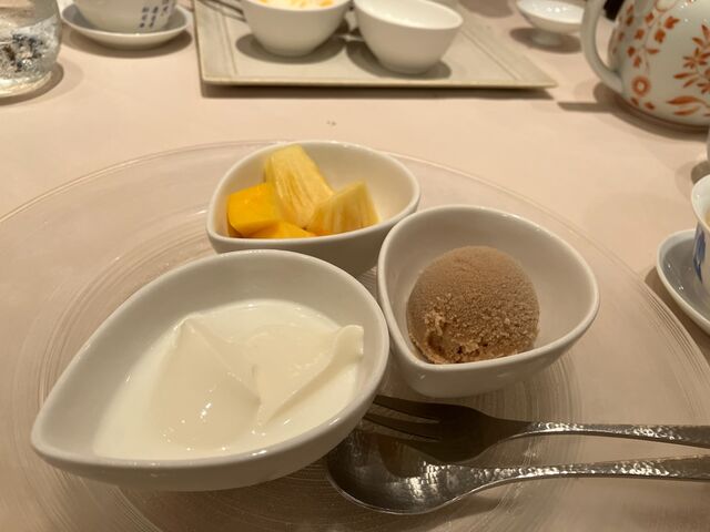 デザート(中国式アイス、杏仁豆腐、パイナップル、マンゴー)