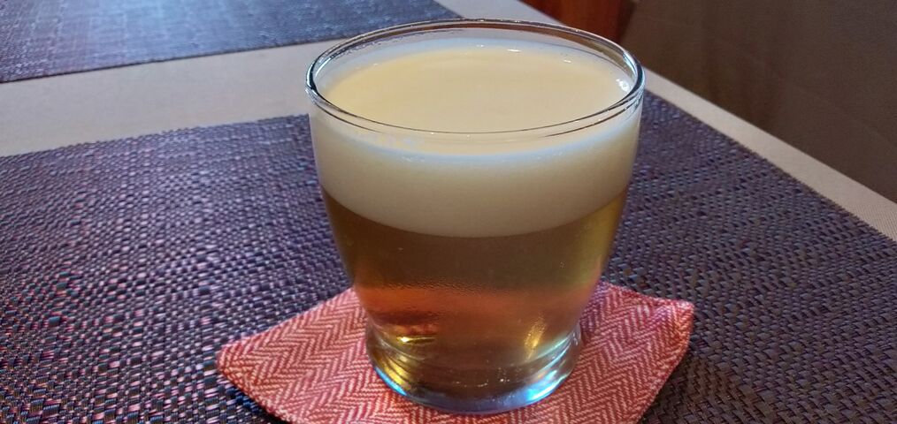通常スリムな細長のグラスに注ぐのだが大きめのグラス。香りが楽しめる。